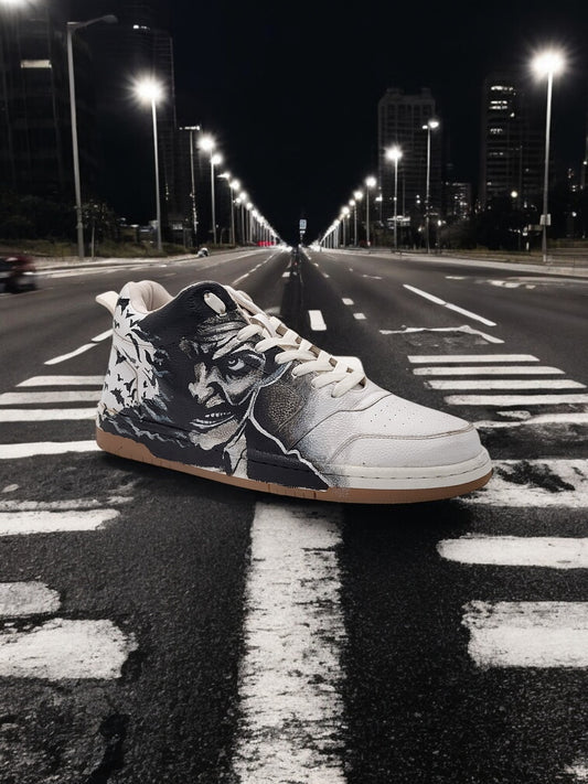 Sneakers featuring patterns and themes inspired by blockbuster films, classic Hollywood styles, or famous movie quotes.