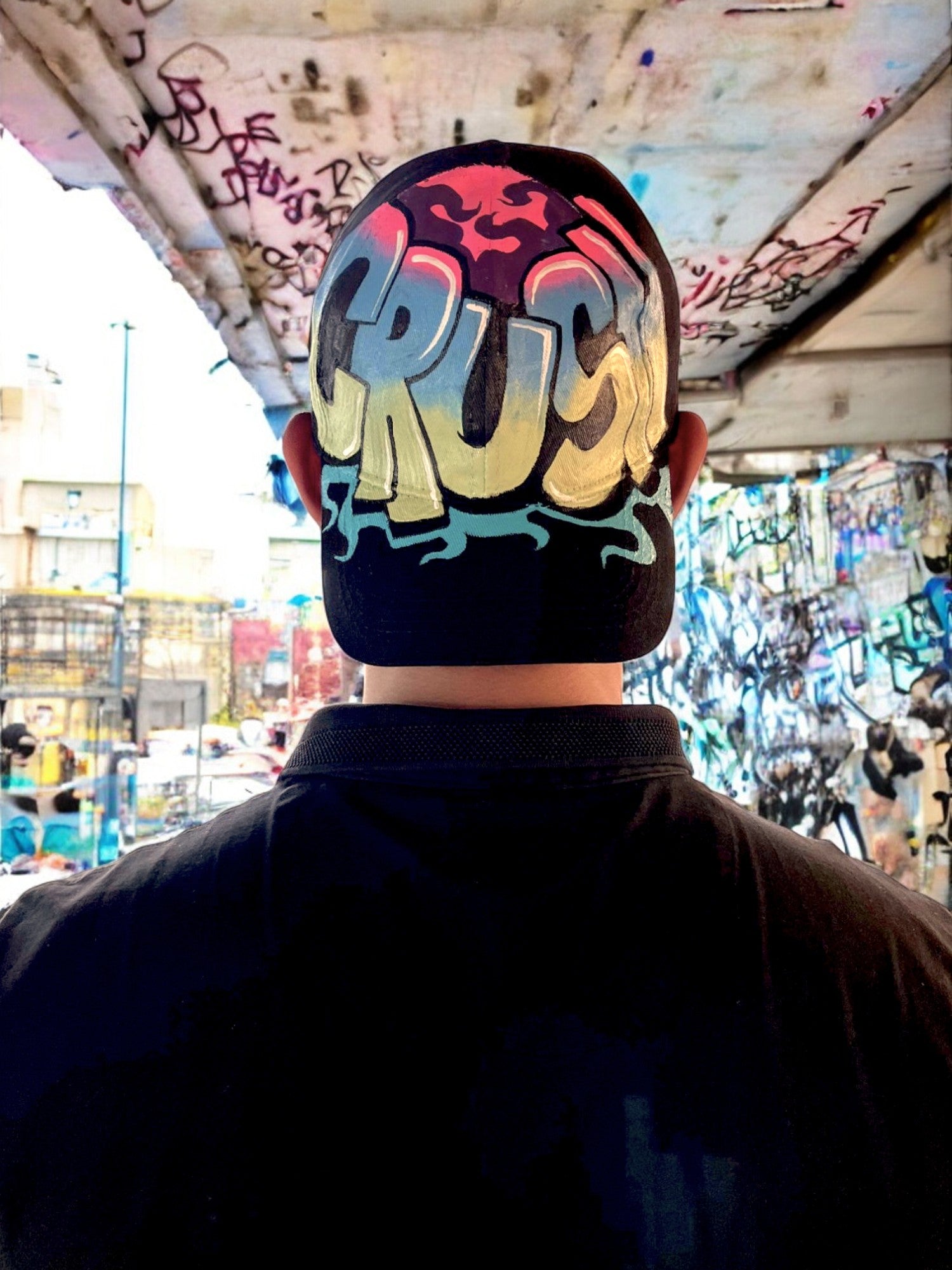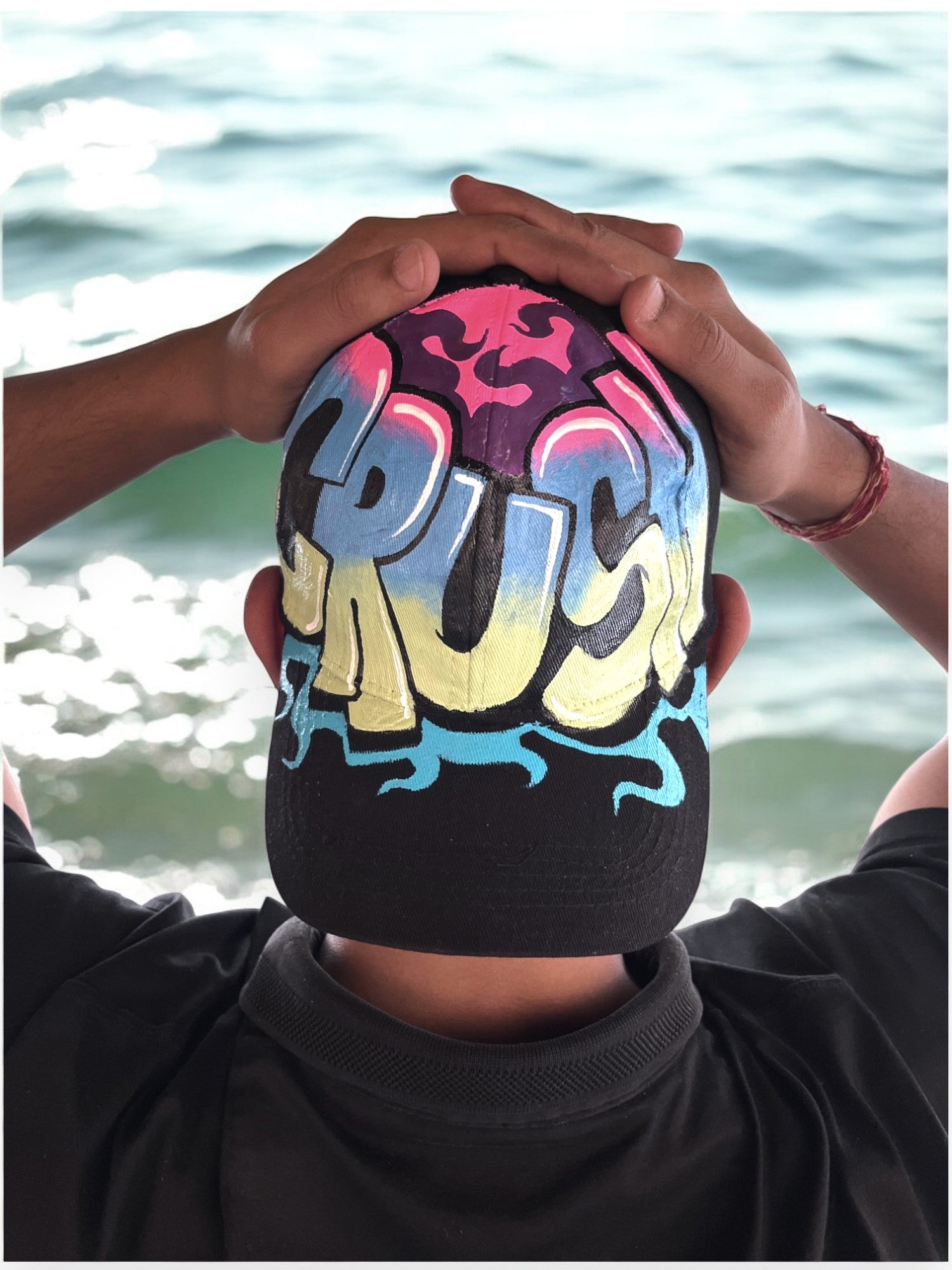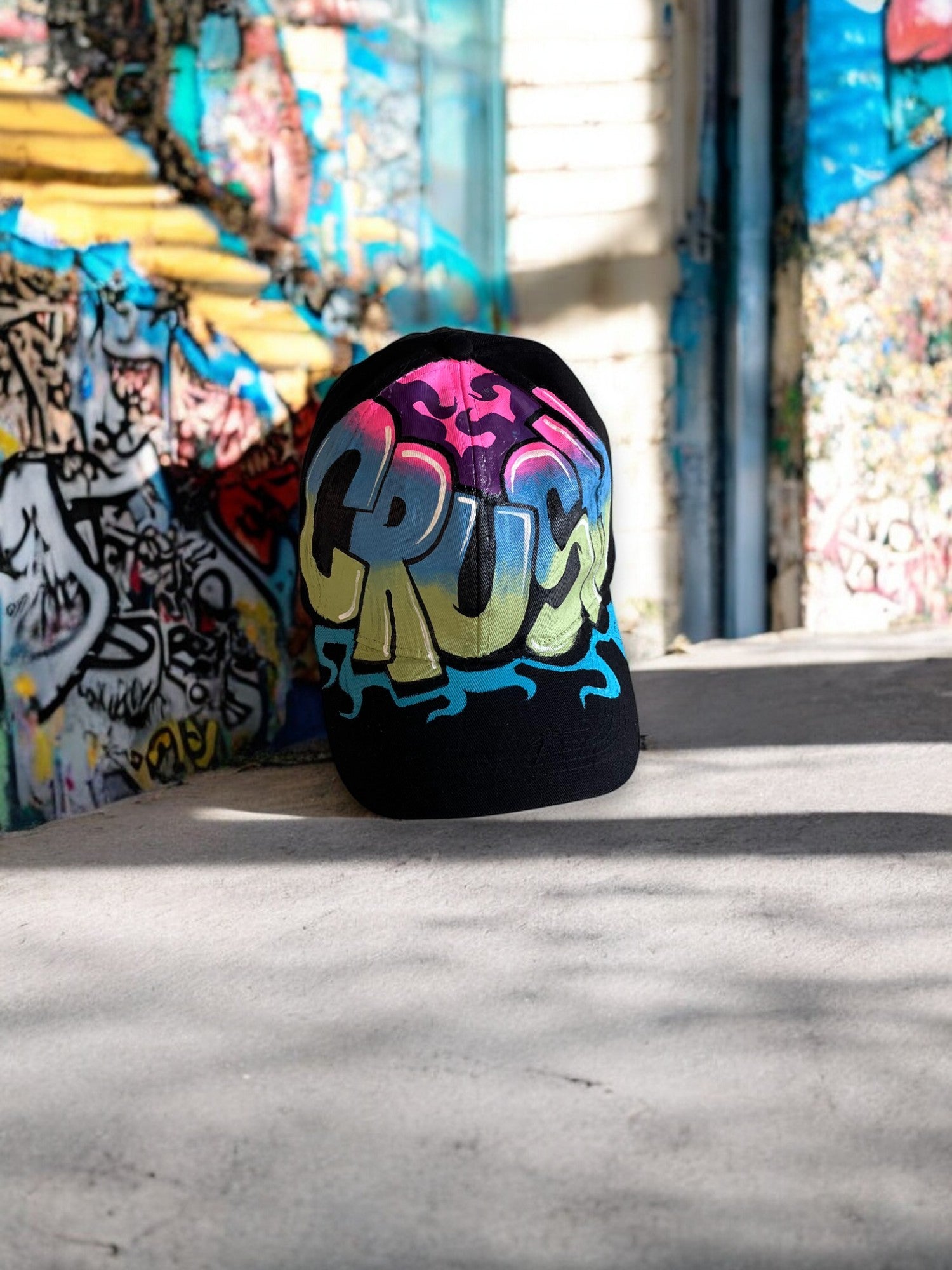 Make a statement with our Hand-Painted "CRUSH" Graffiti Cap!