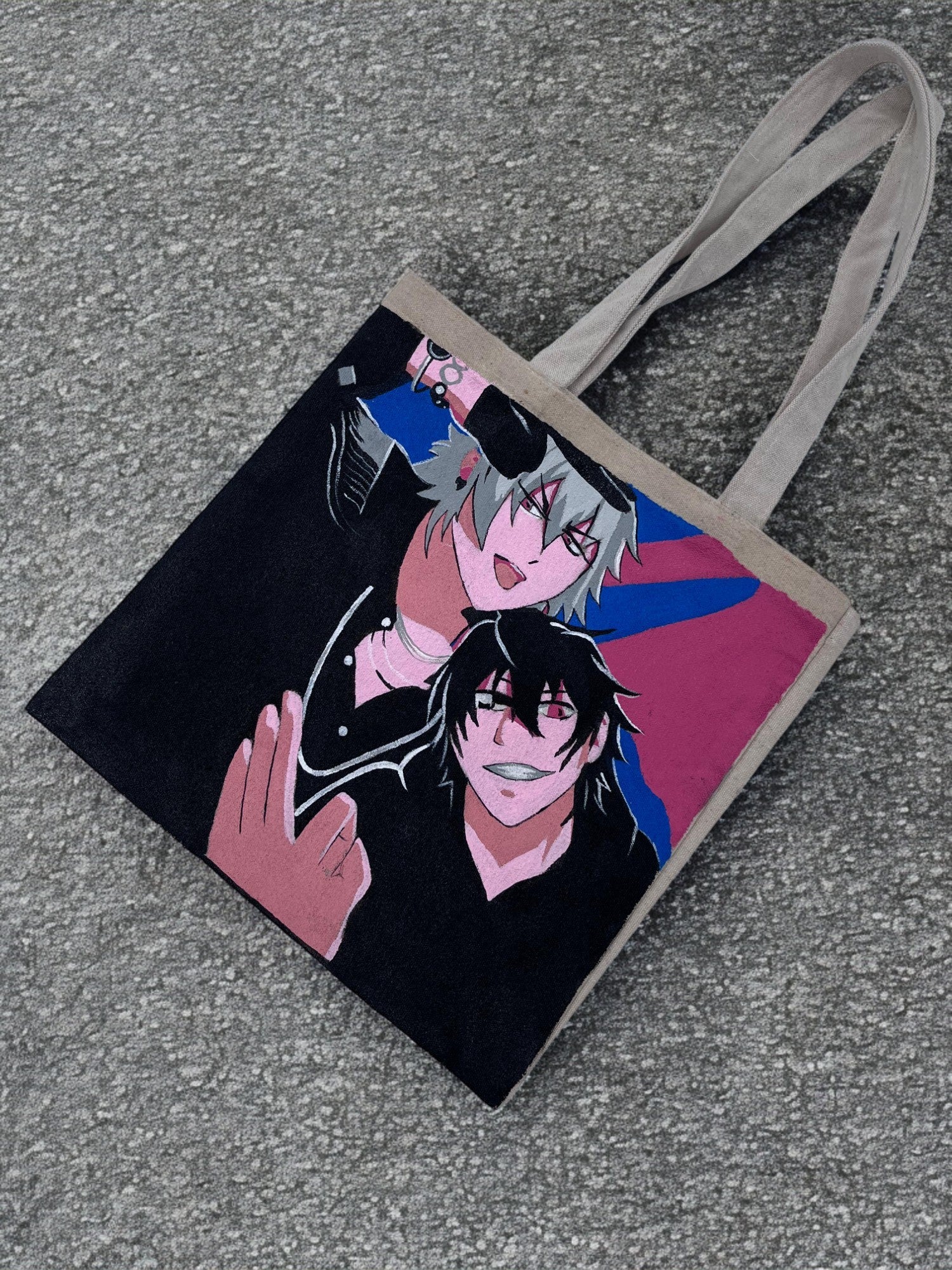 Show your appreciation for dynamic anime pairs with this unique and artistic hand-painted tote bag. Made from durable canvas, this bag is a stylish way to carry your belongings while showcasing your fandom.