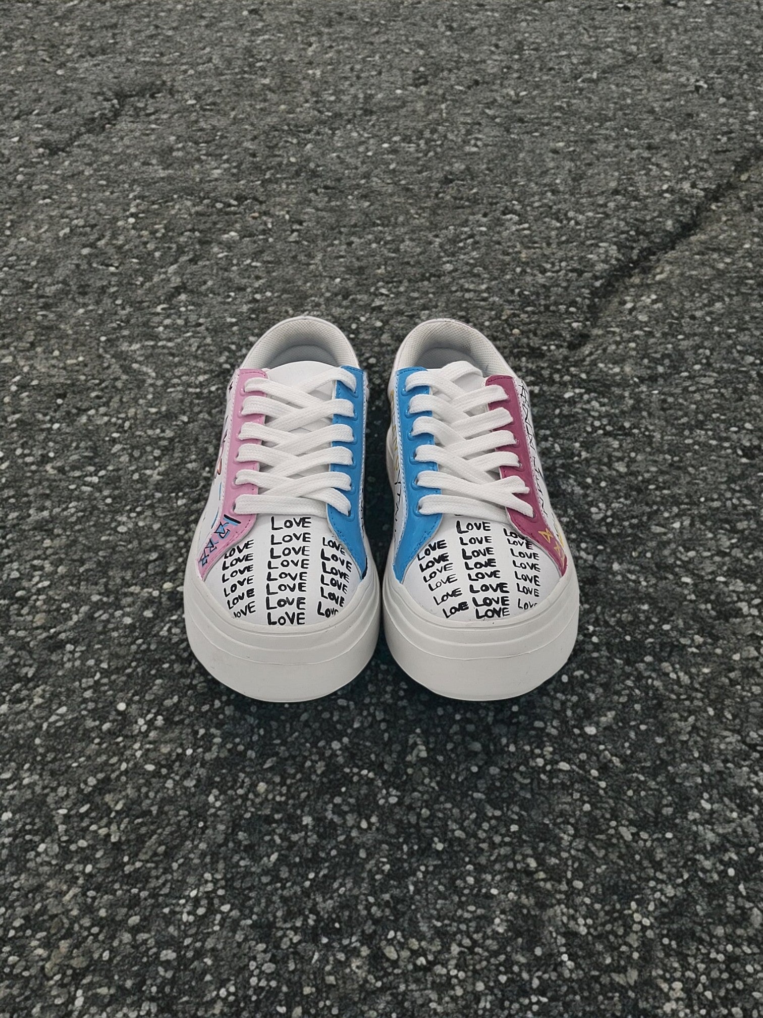 Step out in style and let your personality shine with these Love Doodling sneakers! They're the perfect way to add an artistic and edgy touch to your everyday wardrobe.