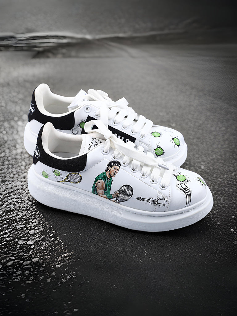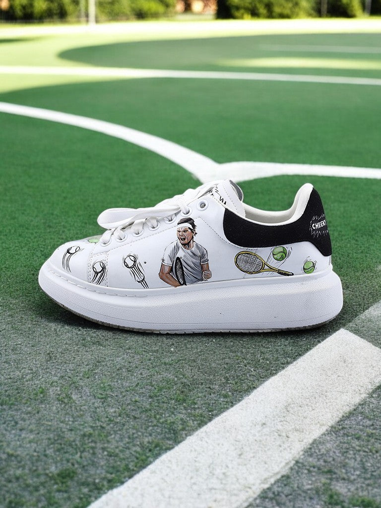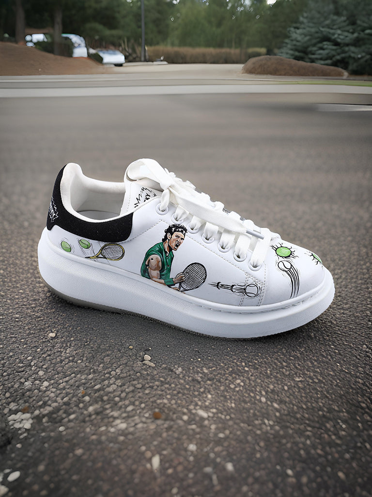Take your love for tennis off the court with these custom hand-painted tennis-inspired sneakers! Designed for sports enthusiasts, sneaker collectors, and fashion-forward individuals, these unique sneakers for men and women combine art, style, and athletic energy.