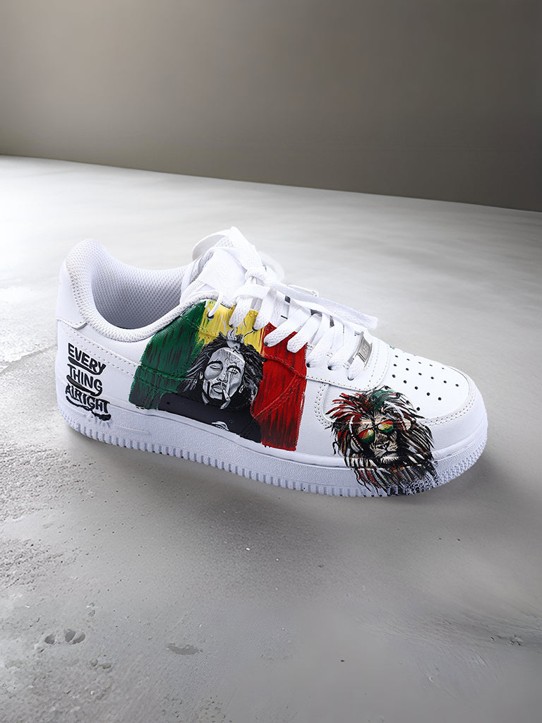 Perfect for Bob Marley fans, sneaker collectors, and urban fashion lovers, these custom hand-painted sneakers let you carry the essence of One Love with every step.