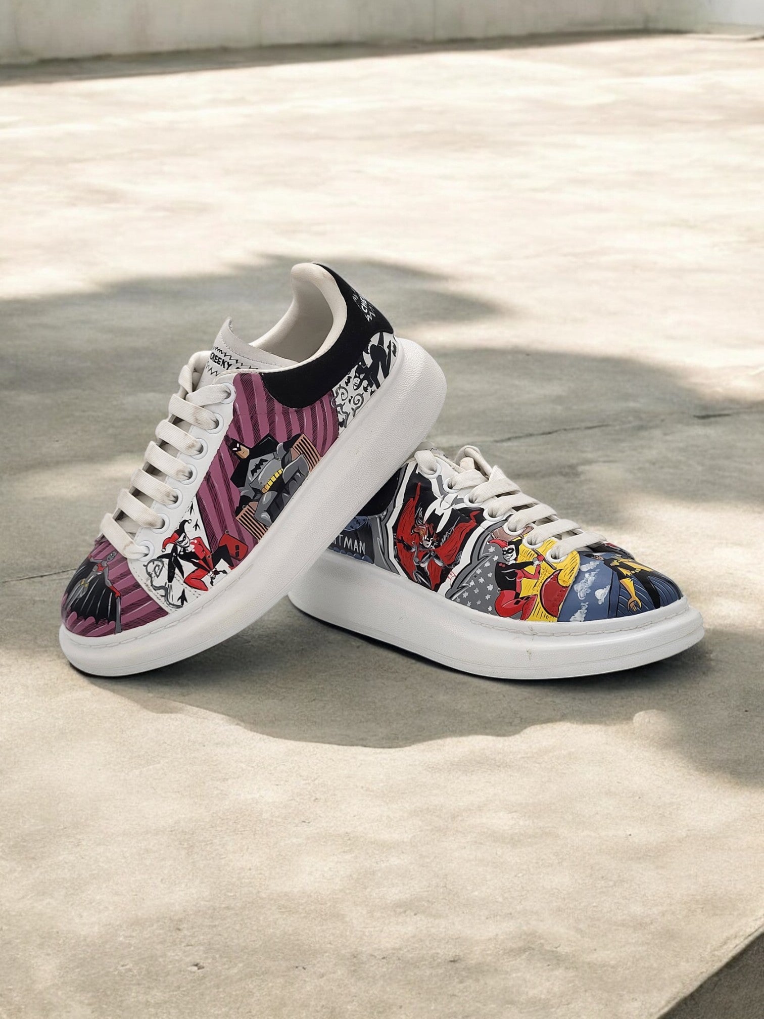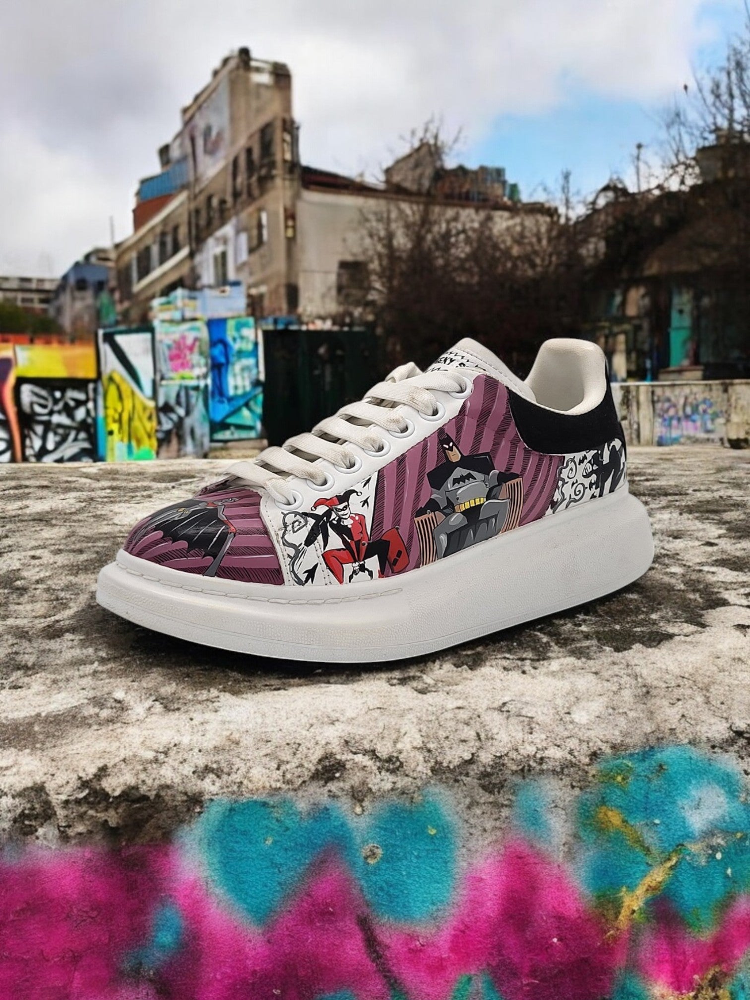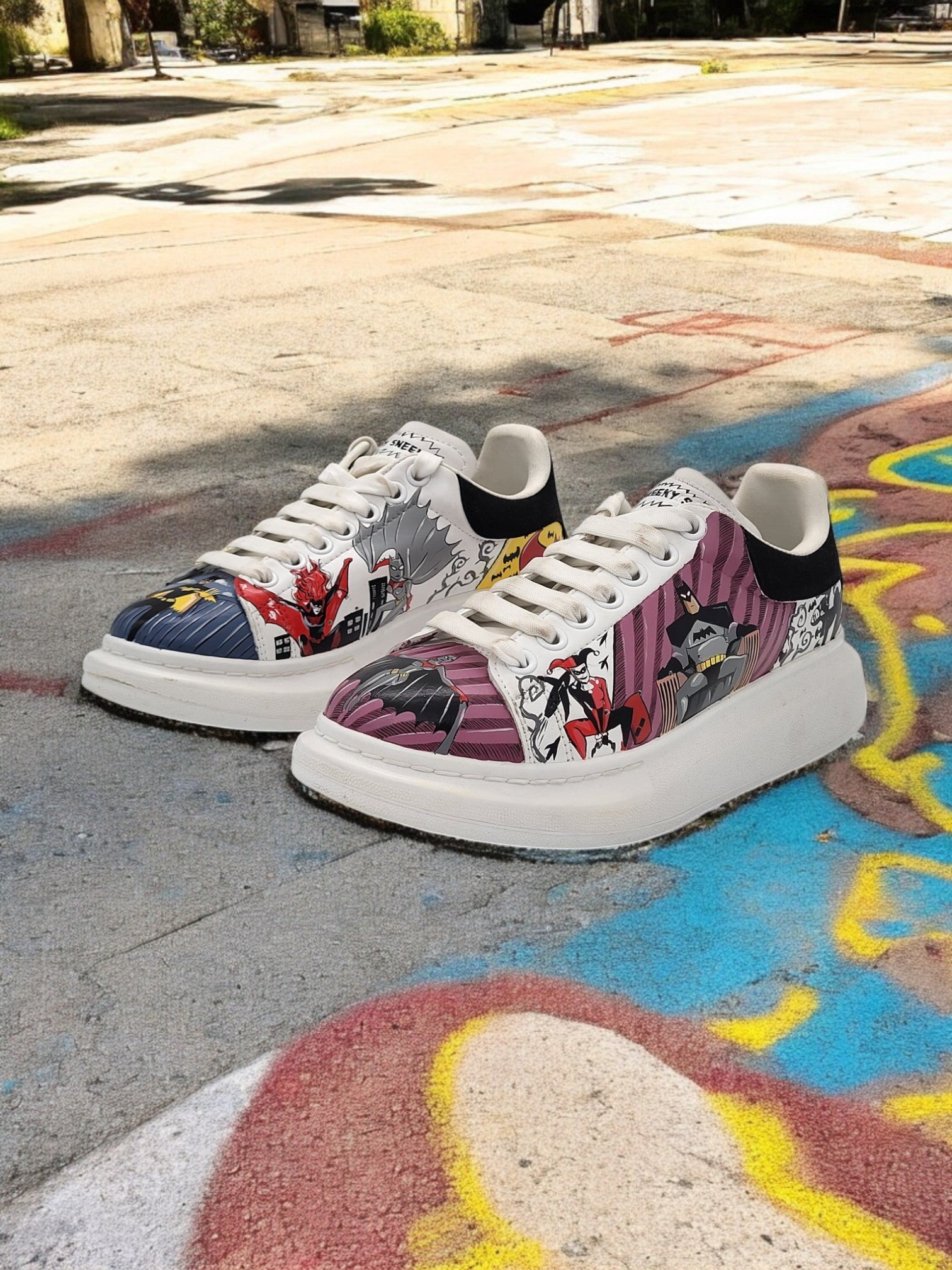 "Custom Hand-Painted Batman & Harley Quinn Sneakers – DC Comics-Inspired Footwear"