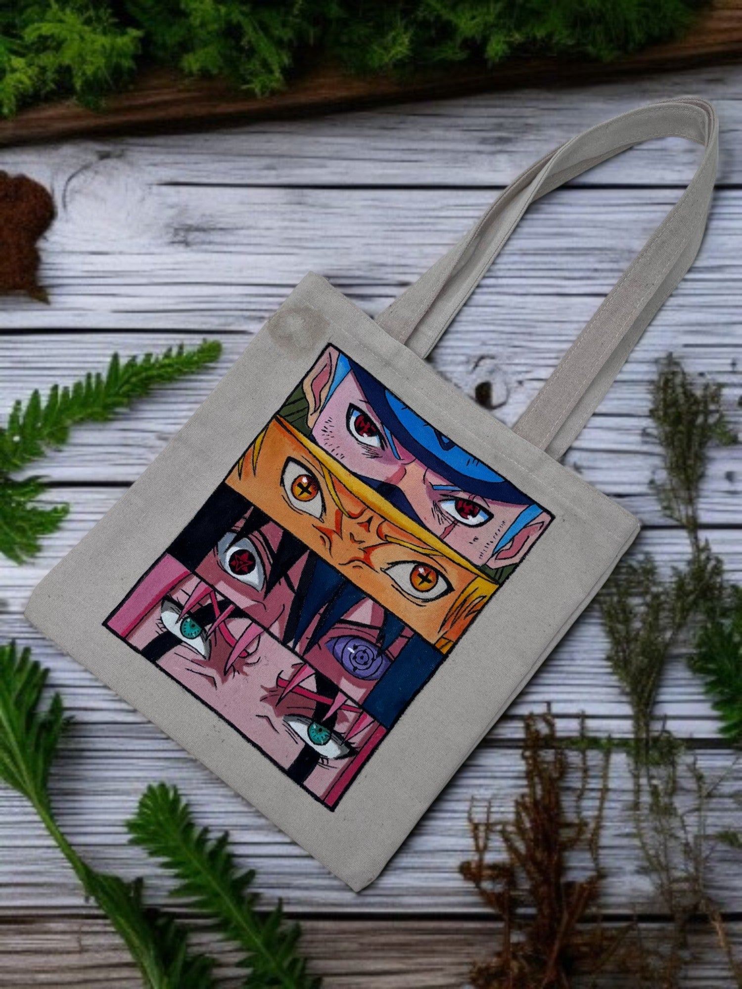 Carry your world with the captivating gaze of your favorite anime characters! This hand-painted tote bag is a unique way to express your fandom. It also makes a fantastic gift for any Naruto enthusiast!