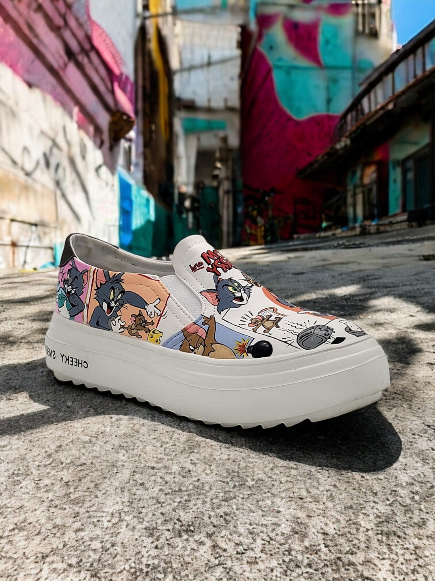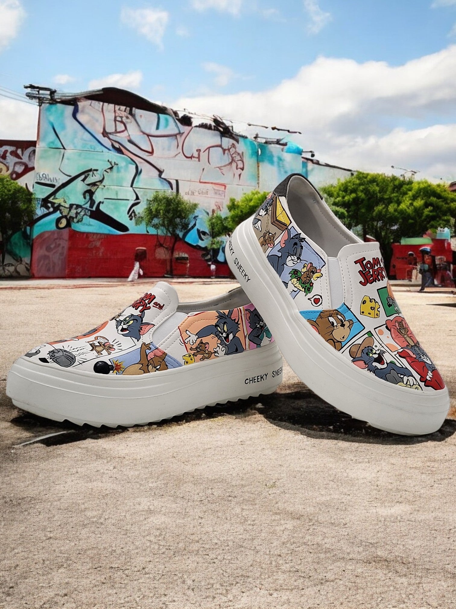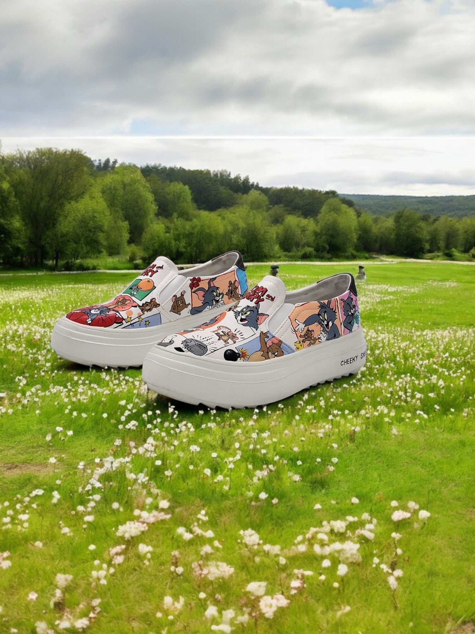 "Tom and Jerry Platform Sneakers – Nostalgic Hand-Painted Sneakers for Cartoon Lovers"